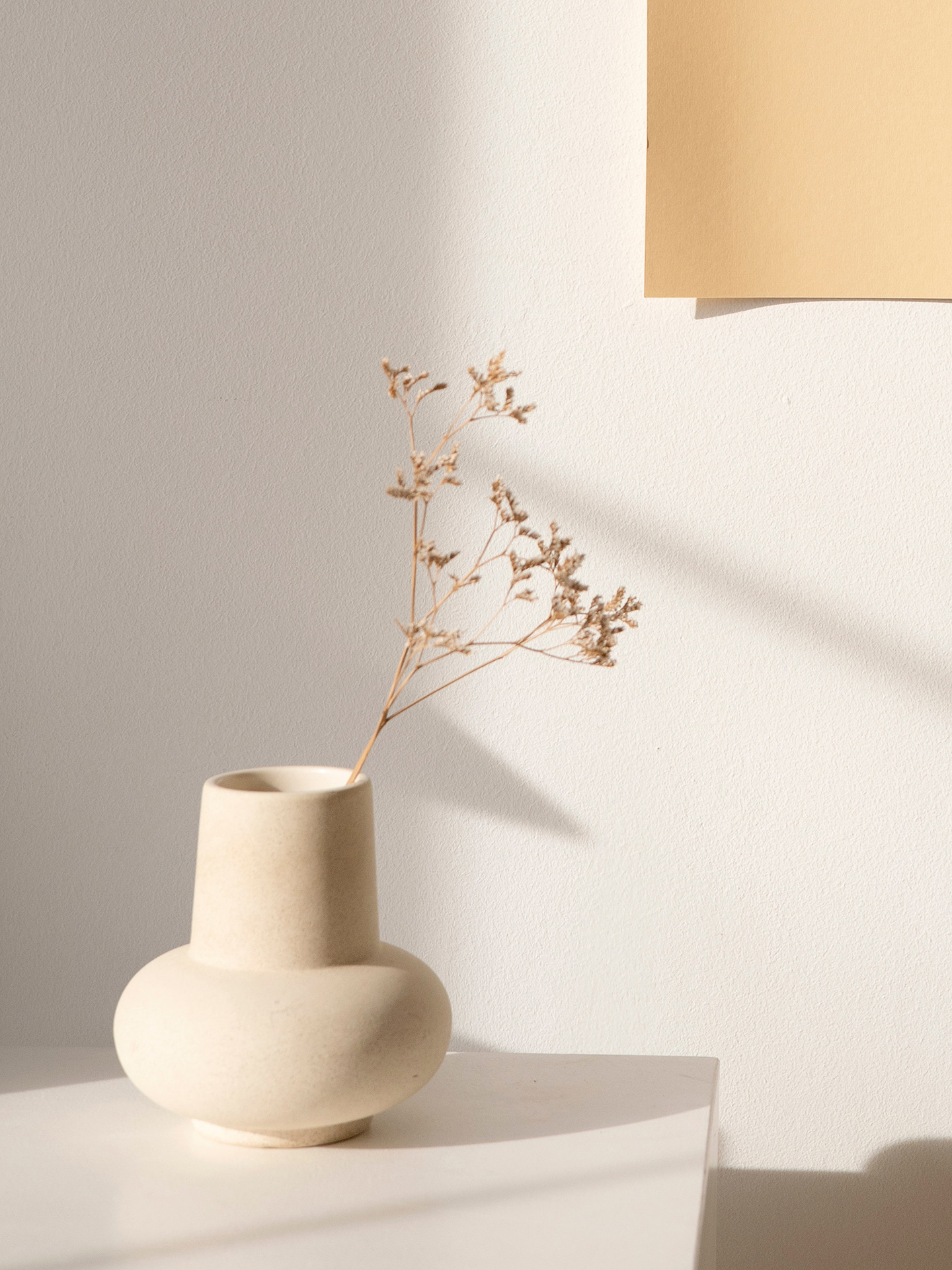 The "Ann" is a minimalist ceramic vase with 2 segments - wider at the bottom and narrower at the top. It's perfect for showcasing a single stem flower.